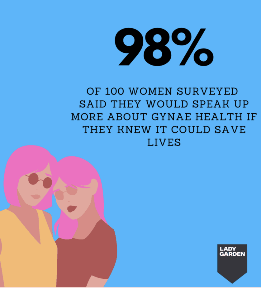By talking! Conversation can save lives. We want everyone to talk openly about their gynae health from periods to reproductive health to menopause and everything in between. Banishing the stigma and taboo around the topic still needs work so get talking everyone and spread the awareness of signs and symptoms and confidence in knowing your own body. Don’t be embarrassed to say the word Vagina out loud. It’s a brilliant word. As is Vulva, and cervix and discharge and more. You get the idea! Stay tuned to our website and social feeds too for events, brand partnerships and other ways you can support The Lady Garden throughout 2021.