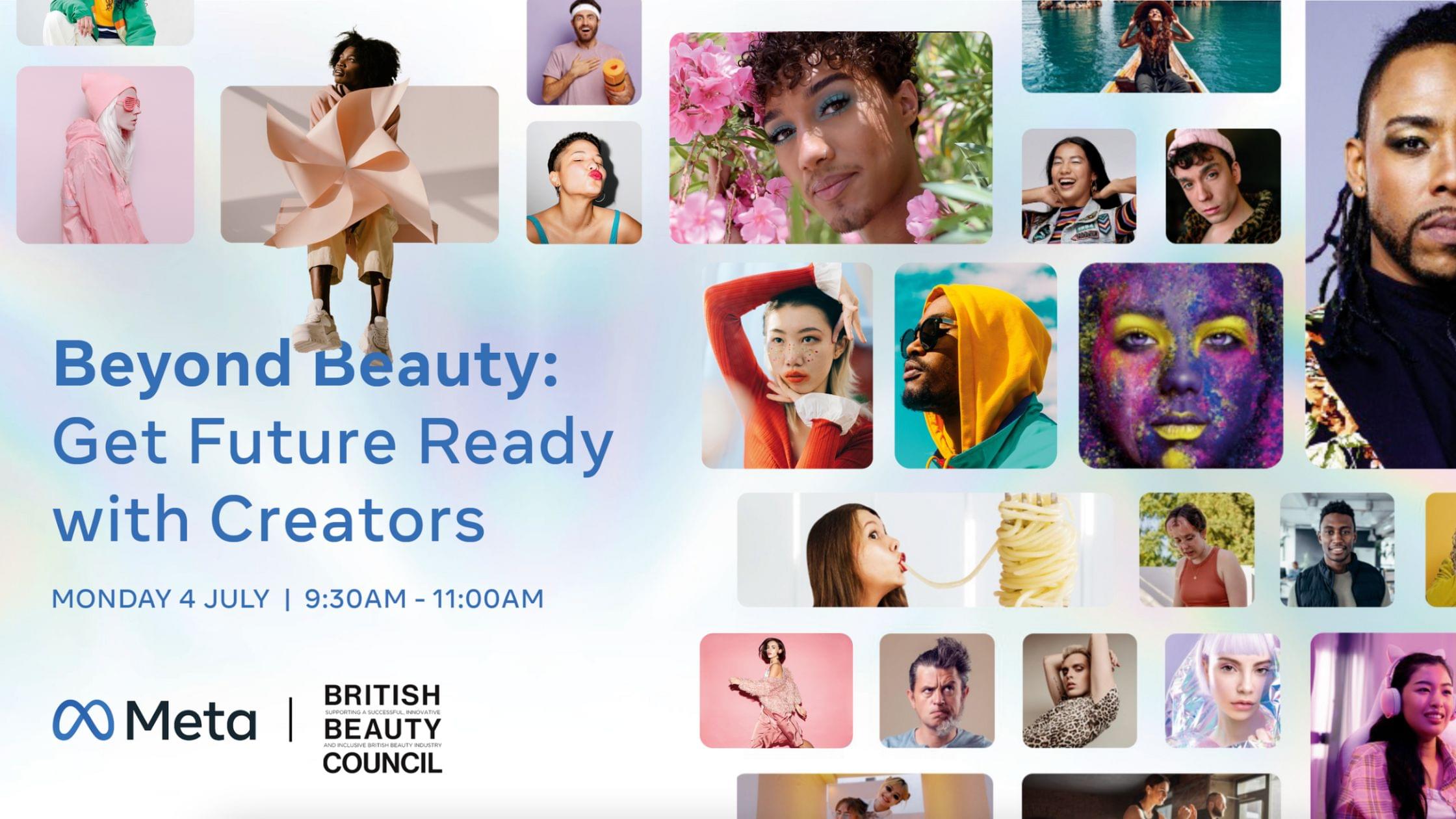 Brought to you by Meta and the British Beauty Council, we’re excited to welcome you virtually on Monday 4 July from 9:30AM BST, to Beyond Beauty: Get Future Ready with Creators.